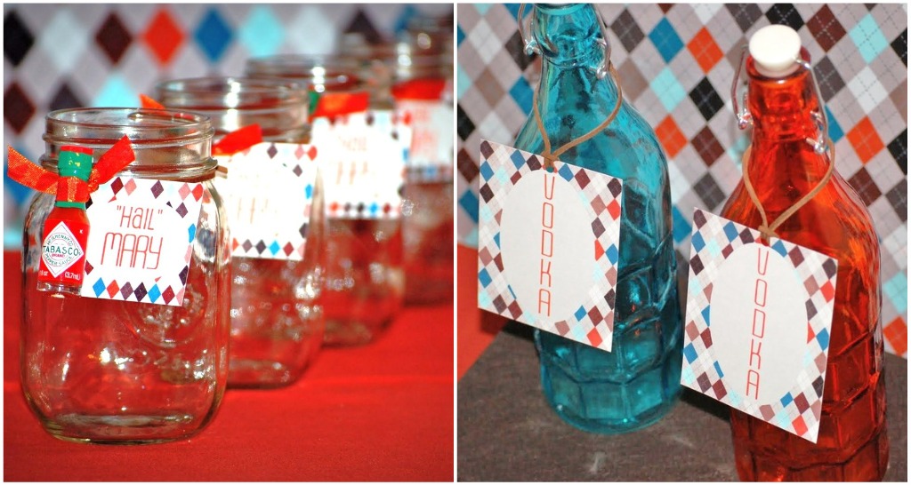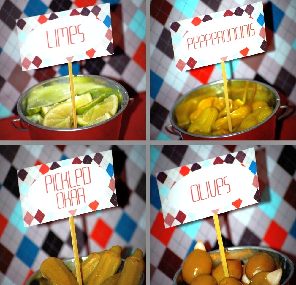 Brandy of Simply Creative Insanity sent me her Bloody Mary bar design, that has many cute details. She began with the name, “Hail Mary”, to add some whimsy to the bar and used the argyle pattern as the prominent design feature.