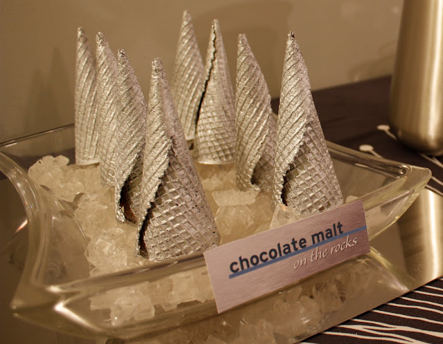 I received an email last week from Kathleen of Sweet Table Chicago, sharing some of her recent designs (come to find out I had stumbled across her website before and admired her work). I immediately fell in love with this ice cream “BAR” concept and couldn’t wait to share it with you! Take a look at how she incorporated typical barware and ‘cocktails’ into a sophisticated ice cream bar.
