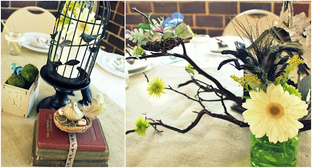 Another fabulous job! The rustic nest and birdcage accent pieces, and that sweet blue & green palette are just so charming!